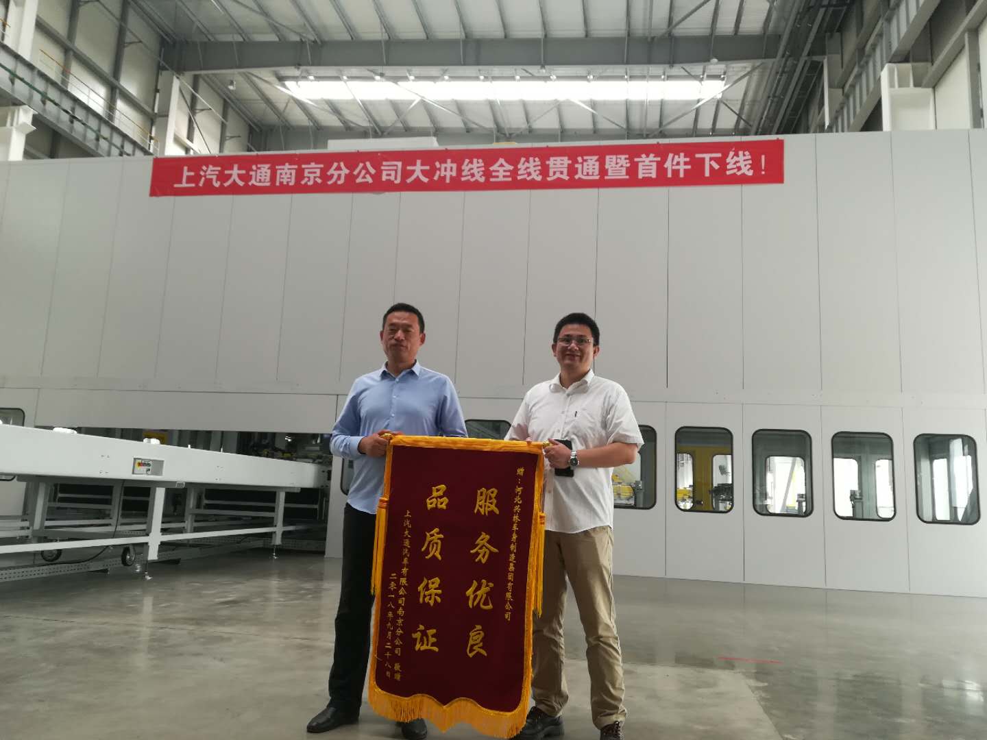 2018年9月28日,我司應上汽大通南京分公司邀請參加上汽大通南京分公司大沖線全線貫通暨首件下線儀式。
